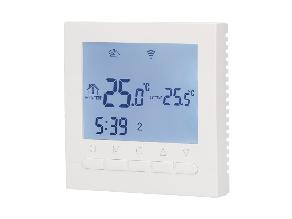 5x Aluzan E-16 WiFi, programovateľný izbový termostat pre spínanie elektrického vykurovania do 16 A, diaľkovo ovládateľný cez aplikáciu Android alebo iOS